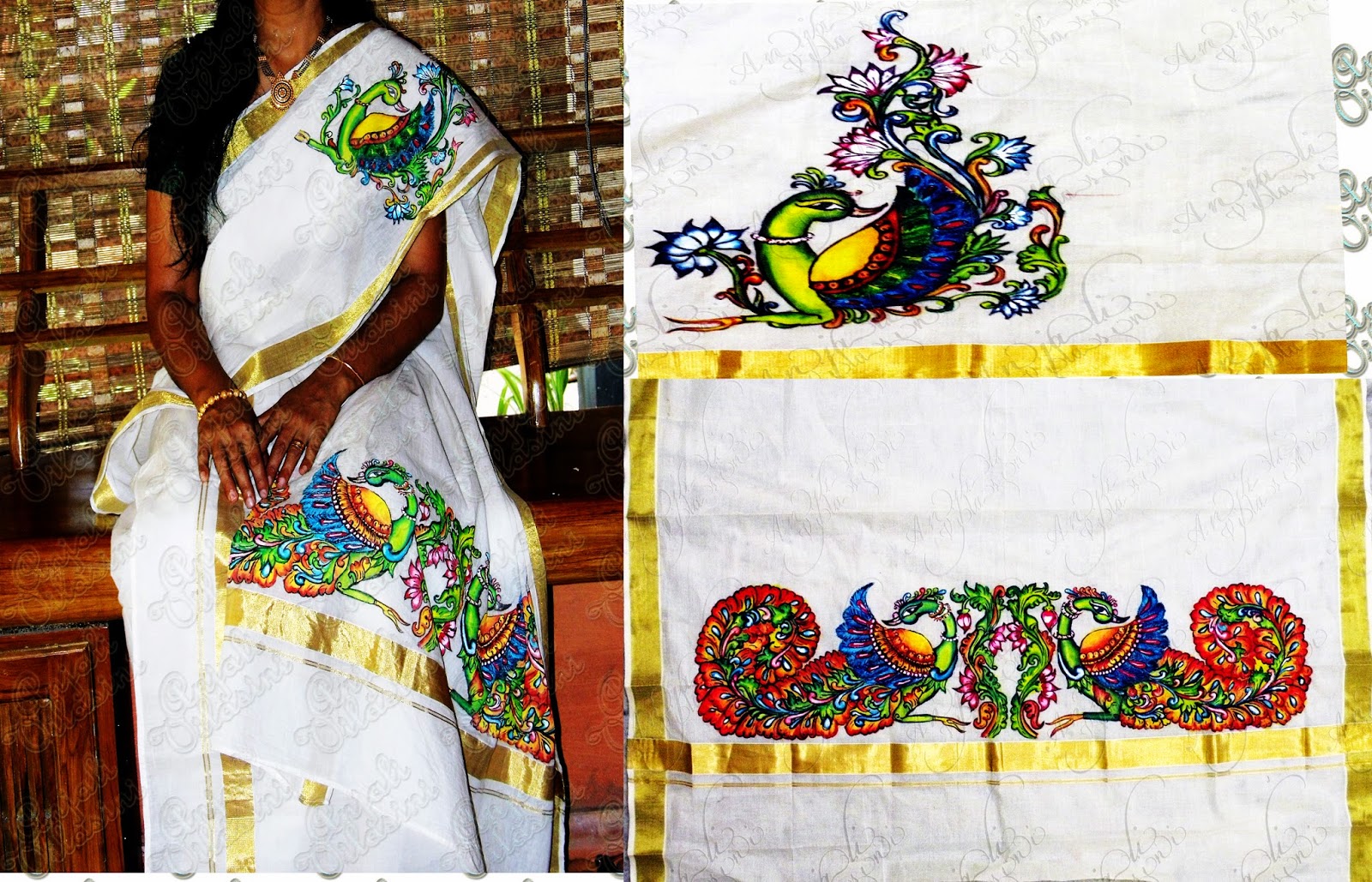 Uncategorized Peacock Design Kerala Saree / It gives a contemporary look to the traditional kerala. Peacock green with golden peacock design saree image.